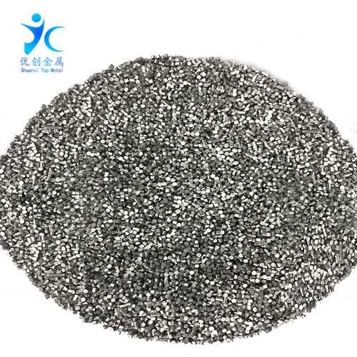 Pure titanium material is the most used.It has high corrosion resistance for pure titanium.The surface of pure titanium pellet is polished and clean.So it is widely used as additive.It also can be used in coating and chemical industry.As the manufacturer of pure titanium pellet,we have lots of sizes from stock,so we can provide low price and fast delivery.
